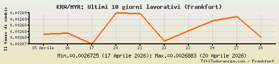 KRW/MYR, tassi di cambio storici