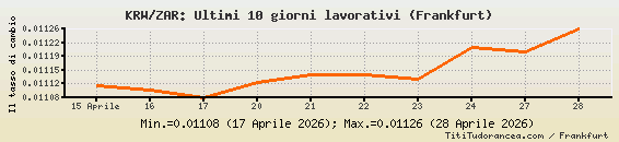 KRW/ZAR, tassi di cambio storici