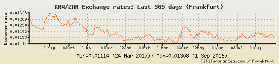 Il tasso di cambio KRW / ZAR