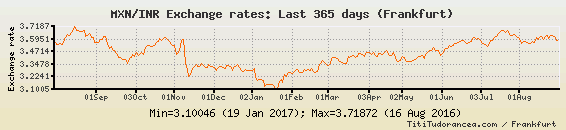 Il tasso di cambio MXN / INR
