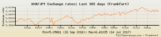 Il tasso di cambio MXN / JPY