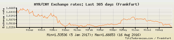 Il tasso di cambio MYR / CNY