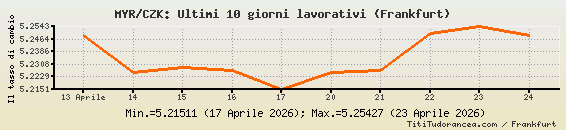 MYR/CZK, tassi di cambio storici