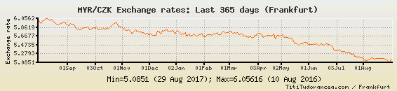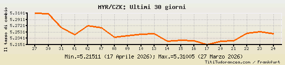 Il tasso di cambio MYR / CZK