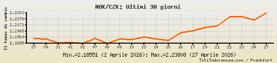 Il tasso di cambio NOK / CZK