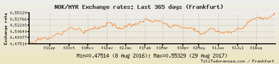 Il tasso di cambio NOK / MYR