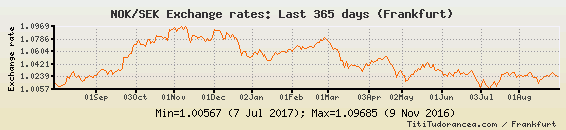Il tasso di cambio NOK / SEK
