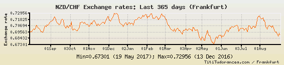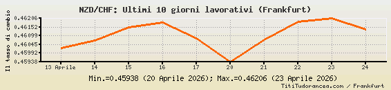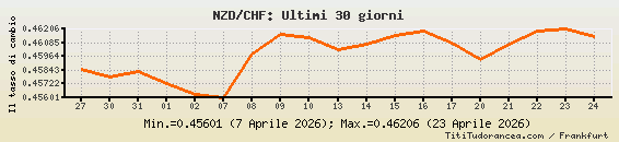 1 Dollaro neozelandese = 0.46136 franchi svizzeri