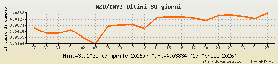 1 Dollaro neozelandese = 4.03834 yuan