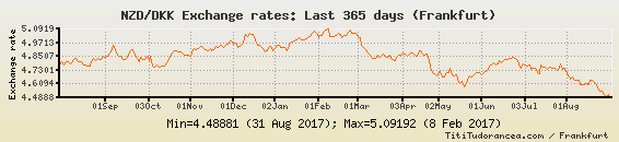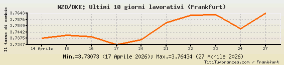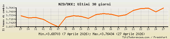 1 Dollaro neozelandese = 3.76434 corone danesi