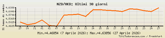 1 Dollaro neozelandese = 4.63856 dollari di Hong Kong