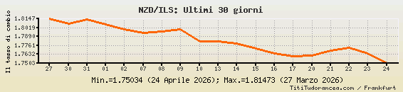 1 Dollaro neozelandese = 1.75034 nuovi sicli