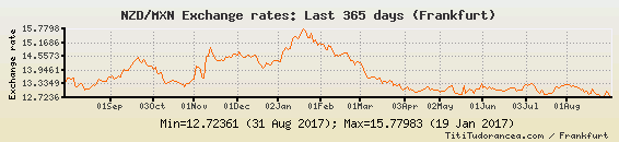 Il tasso di cambio NZD / MXN