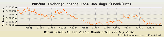 Il tasso di cambio PHP / BRL