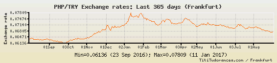 Il tasso di cambio PHP / TRY