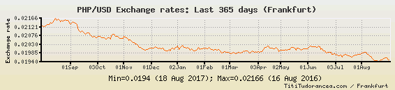 Il tasso di cambio PHP / USD
