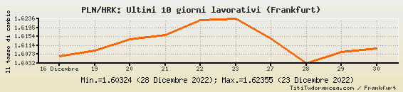 Il tasso di cambio di oggi (30 Dicembre 2022)