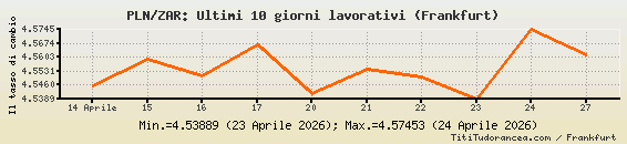 PLN/ZAR, tassi di cambio storici