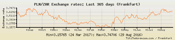 Il tasso di cambio PLN / ZAR
