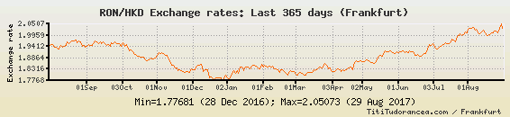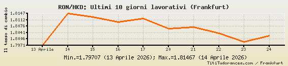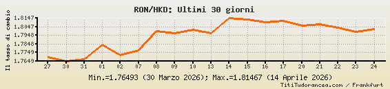 1 Leu romeno = 1.80228 dollari di Hong Kong
