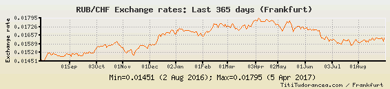 Il tasso di cambio RUB / CHF