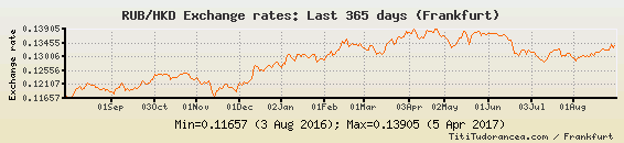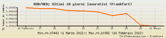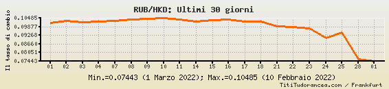 1 Rublo russo = 0.07443 dollari di Hong Kong