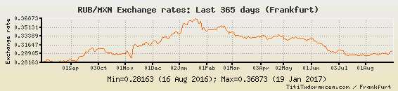 Il tasso di cambio RUB / MXN