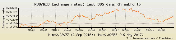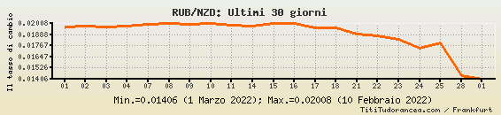 1 Rublo russo = 0.01406 dollari neozelandesi