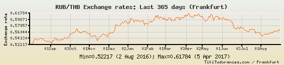 Il tasso di cambio RUB / THB