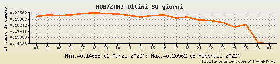 RUB/ZAR, tassi di cambio storici