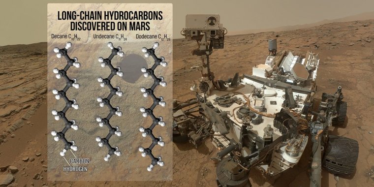 La scoperta, casuale, è stata effettuata dalla sonda Curiosity della NASA mentre esplorava il cratere marziano Gale. Le diverse molecole rinvenute hanno lunghezza di 10, 11 e 12 atomi di carbonio rispettivamente. (Wikinotizie)
