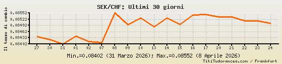 SEK/CHF, tassi di cambio storici