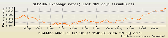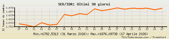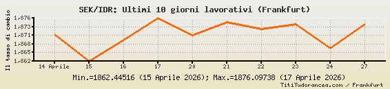 1 Corona svedese = 1874.09556 rupie indonesiane