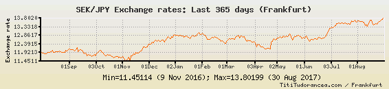 Il tasso di cambio SEK / JPY