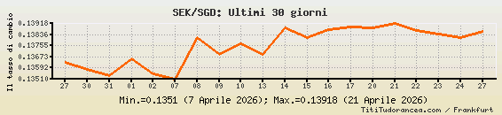 SEK/SGD, tassi di cambio storici