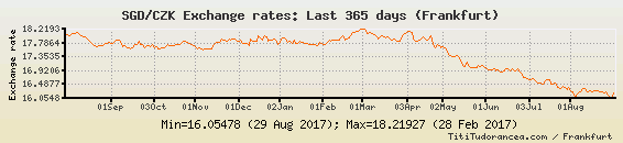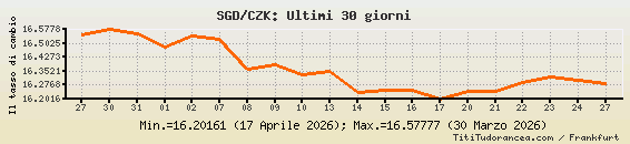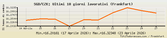 1 Dollaro di Singapore = 16.28795 corone ceche