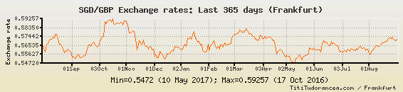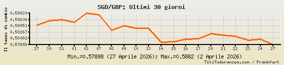 1 Dollaro di Singapore = 0.57898 sterline britanniche