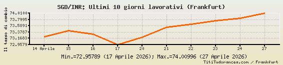 1 Dollaro di Singapore = 74.00996 rupie indiane