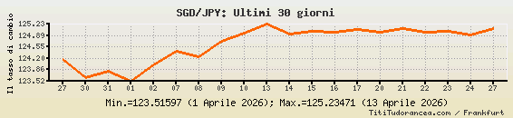 1 Dollaro di Singapore = 125.09028 yen