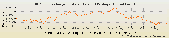 Il tasso di cambio THB / HUF