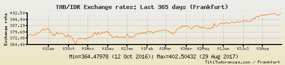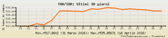 1 Baht thailandese = 532.8277 rupie indonesiane
