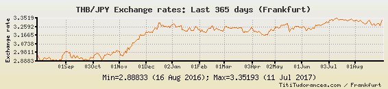 Il tasso di cambio THB / JPY
