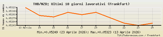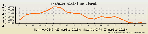 1 Baht thailandese = 0.05258 dollari neozelandesi
