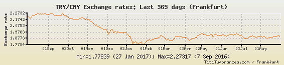 Il tasso di cambio TRY / CNY