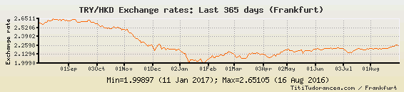 Il tasso di cambio TRY / HKD