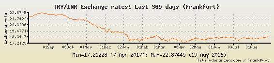 Il tasso di cambio TRY / INR