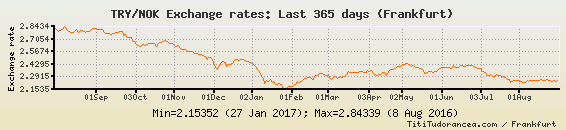 Il tasso di cambio TRY / NOK