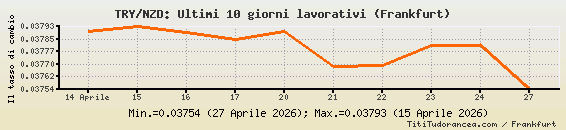 1 Lira turca = 0.03754 dollari neozelandesi