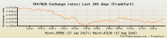 Il tasso di cambio TRY / NZD