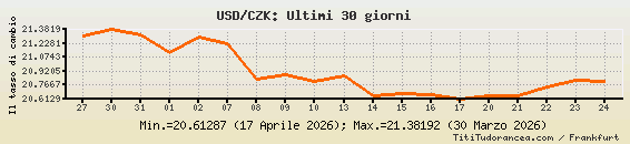 USD/CZK, tassi di cambio storici